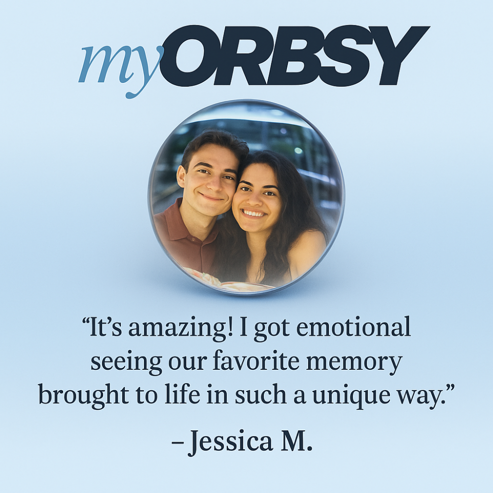 myOrbsy is a 3D crystal ball with a build-in screen that plays your personalized video. Simply connect it via USB-C and upload your file.